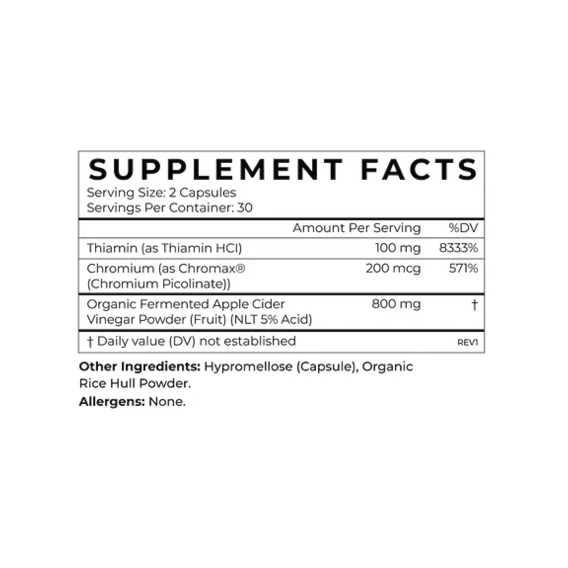 Organic fermented apple cider vinegar, Chromax® chromium picolinate, thiamine.