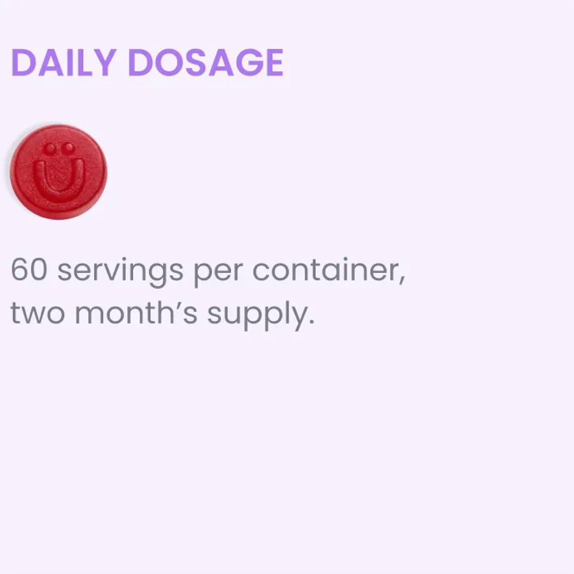 If you are pregnant, nursing, are under the age of 18, take any medication or have any known medical conditions, please consult a healthcare professional before using this or any other dietary supplement. Chew thoroughly before swallowing. Discontinue use and consult a physician if any adverse reactions occur. This product is not intended to diagnose, treat, cure, or prevent any disease. Do not use if the safety seal is damaged or missing. Store in a cool, dry place (15°C to 35°C).