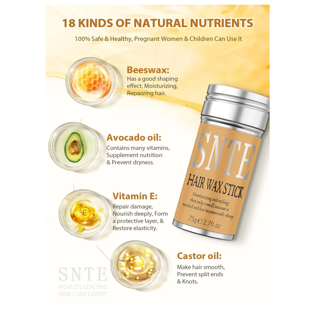 SNTE Hair Wax Stick is rich in castor oil, which effectively smooths hair frizz.