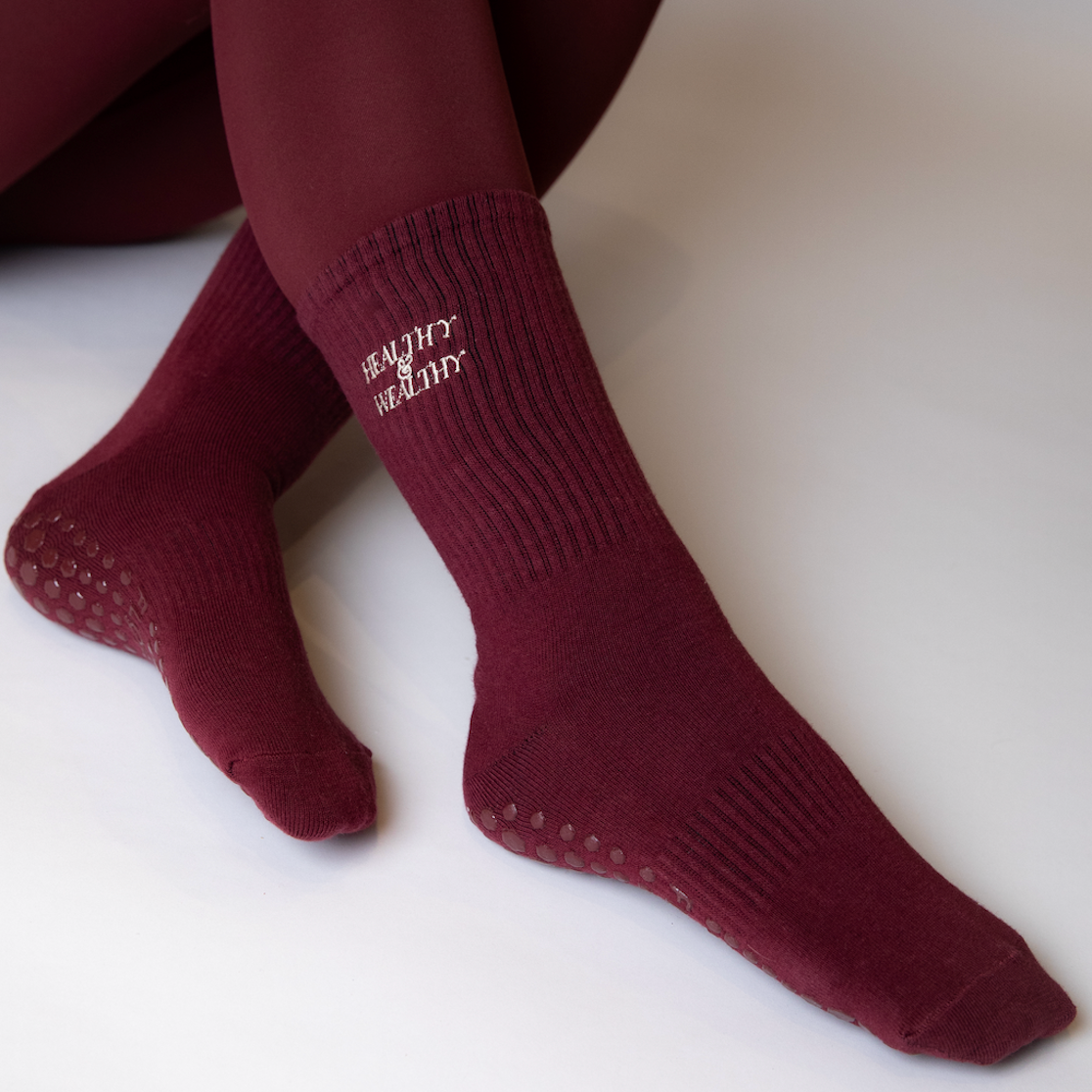 Introducing our Healthy&wealthy Grip Socks, designed specifically for Pilates, Lagree, Yoga, and Barre workouts. These socks combine style and functionality to enhance your exercise experience with comfort and performance.