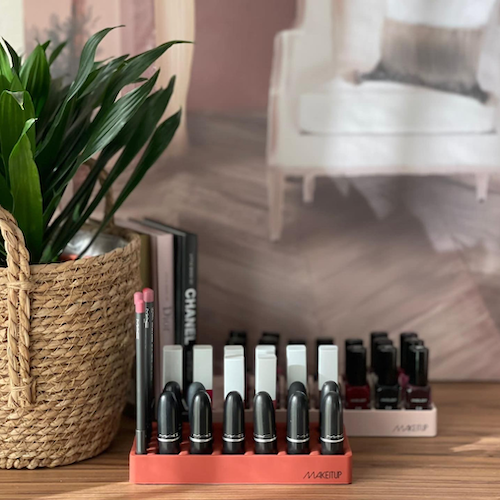This pretty-colored holder can accommodate all kinds and sizes of lipliners, eyeliners, lipsticks, and concealers. It comes in two colors: pink and red.