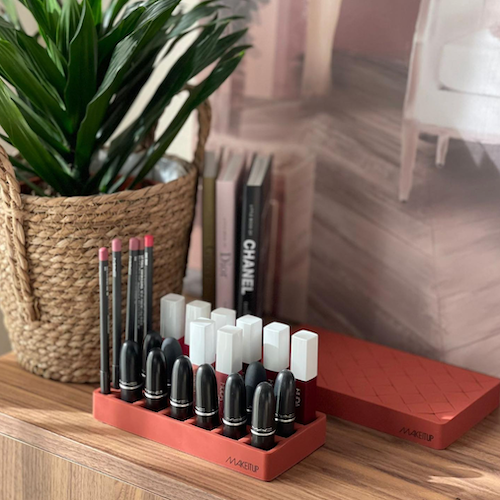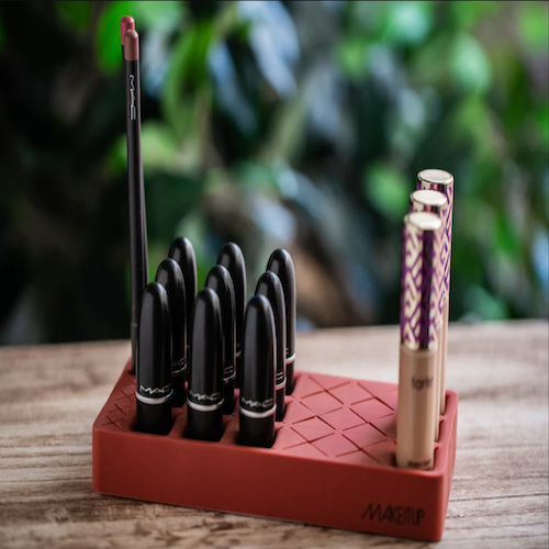 This pretty-colored holder can accommodate all kinds and sizes of lipliners, eyeliners, lipsticks, and concealers. It comes in two colors: pink and red.