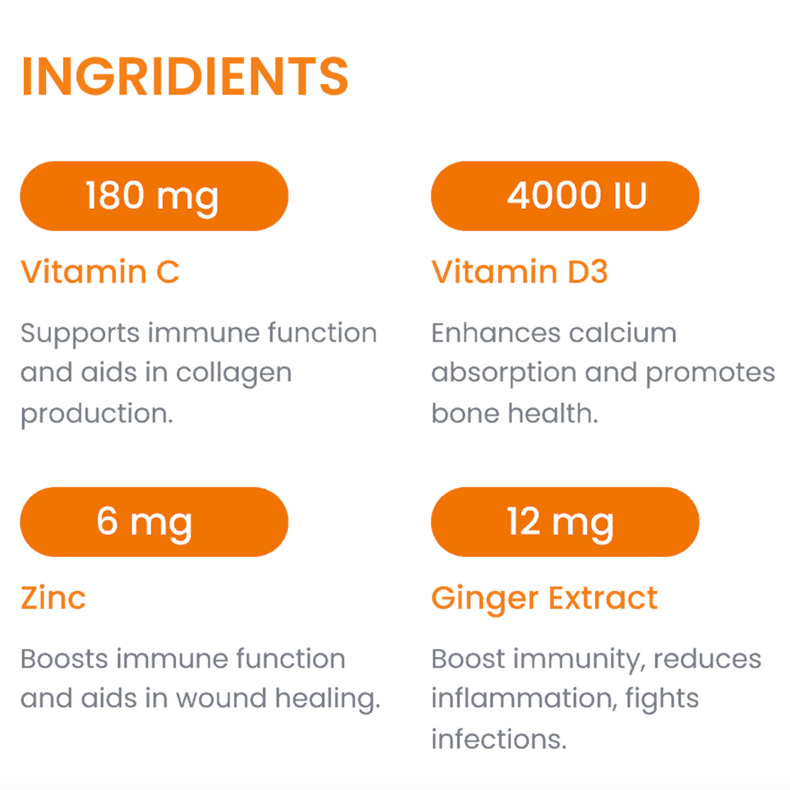 With Vitamin C and Zinc, this formula strengthens your body’s natural defenses against infections.