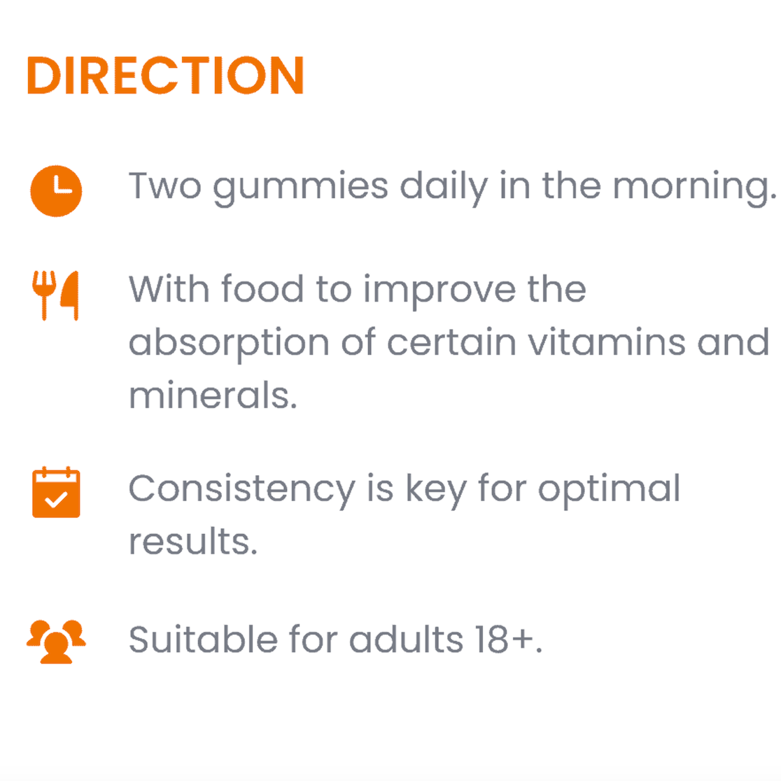 If you are pregnant, nursing, are under the age of 18, take any medication or have any known medical conditions, please consult a healthcare professional before using this or any other dietary supplement. Chew thoroughly before swallowing. Discontinue use and consult a physician if any adverse reactions occur. This product is not intended to diagnose, treat, cure, or prevent any disease. Do not use if the safety seal is damaged or missing. Store in a cool, dry place (15°C to 35°C).
