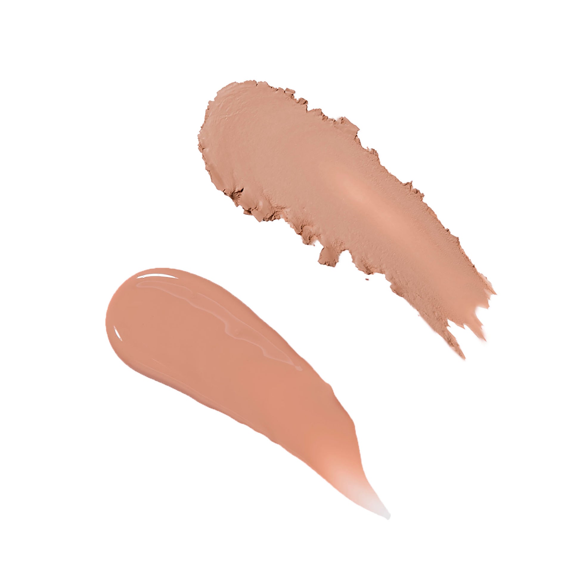 A double ended lip product with matte lipstick on one end and hydrating lip gloss on the other end in the same shade of nude.