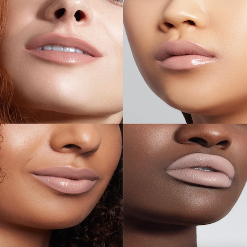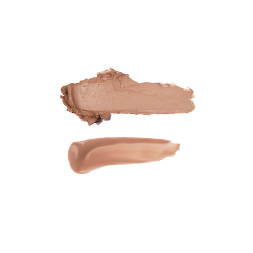 A double ended lip product with matte lipstick on one end and hydrating lip gloss on the other end in the same shade of nude.