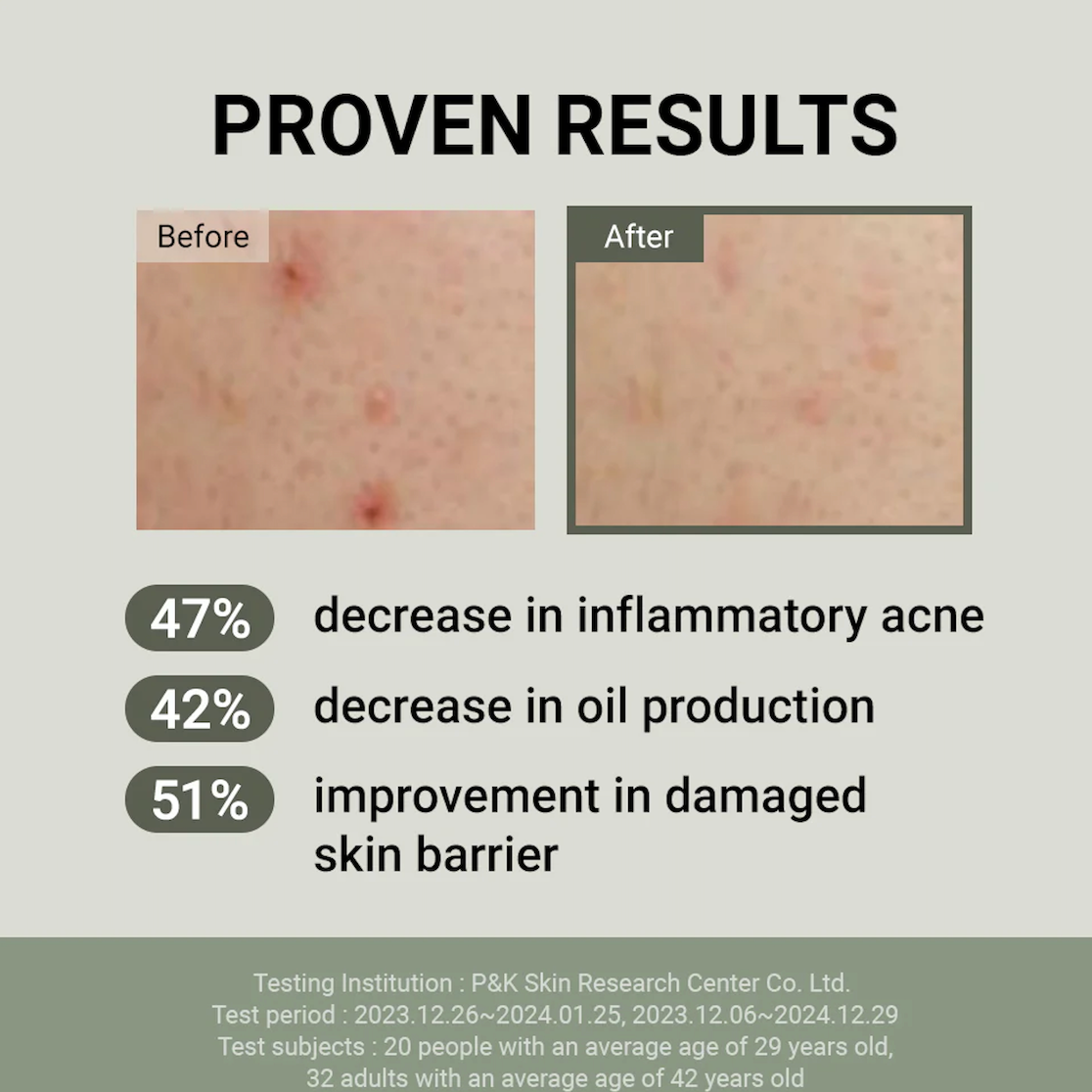MULTI-FUNCTION FORMULA: + 50% Skin Barrier Soothing, + 47% Acne Improvement, + 41% Oil Control