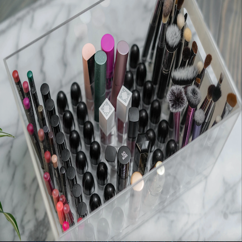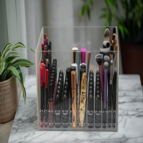 The perfect acrylic organizer for your lipliners, lipsticks, glosses, eye pencils, mascaras and brushes.
