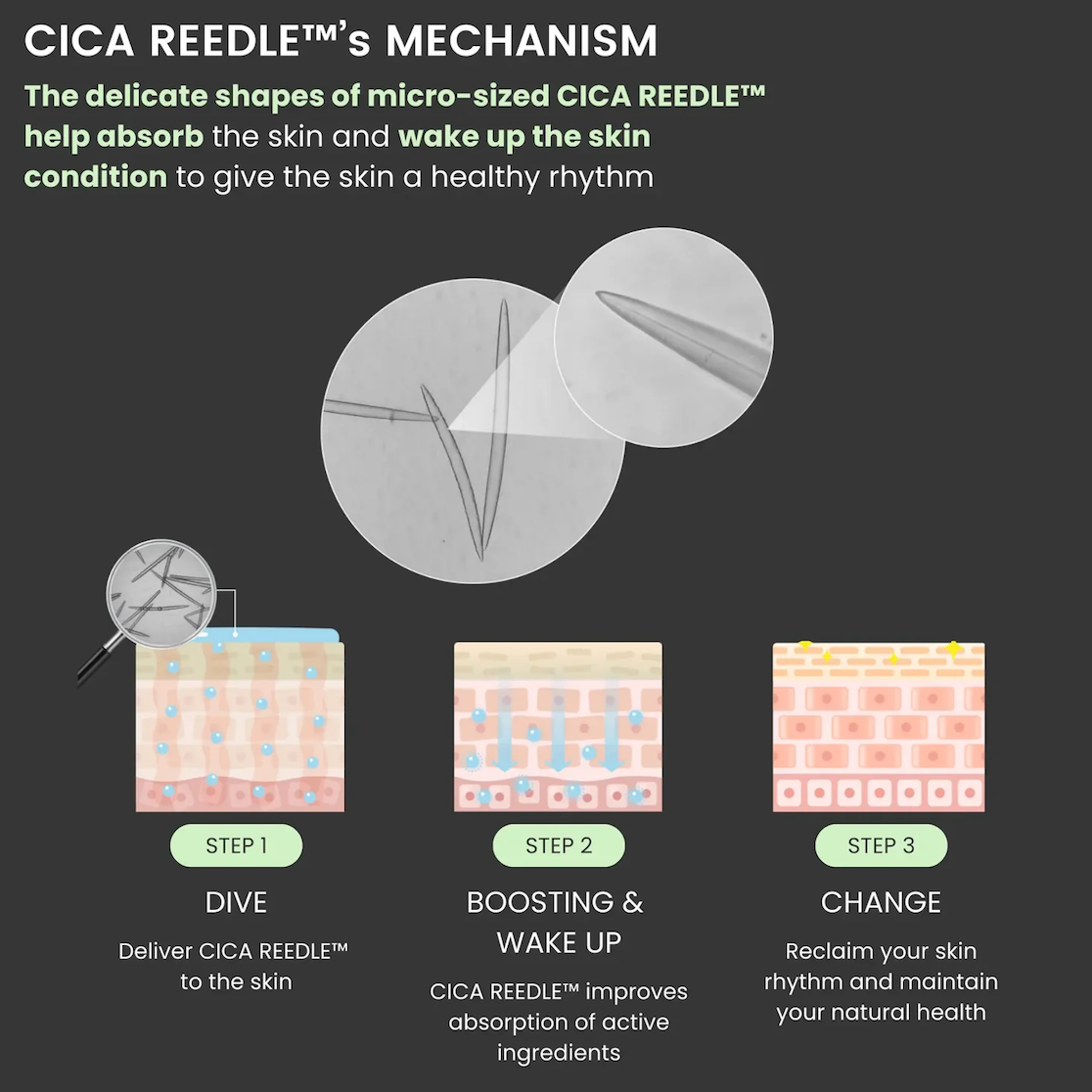 Experience intense nourishment with the Reedle Shot 100. Packed with cica extract, madecassoside, and propolis extract, this ampoule offers anti-inflammatory benefits. Hyaluronic acid and macadamia seed oil amp up moisture for a plump appearance. Formulated with microneedle-like Cica Reedle™, it penetrates deep into skin for smooth, revitalized results.